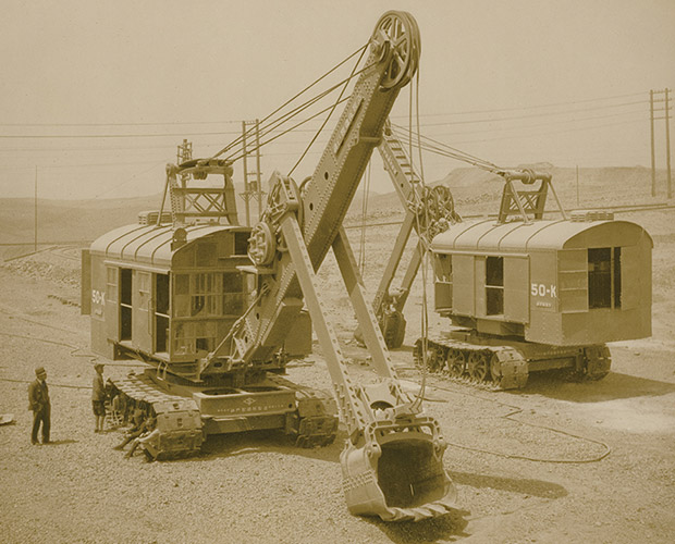 日本明治期以后,公共建設(shè)工程開始引進(jìn)和使用建機(jī),工程現(xiàn)場(chǎng)機(jī)械化得到了不斷發(fā)展,而當(dāng)時(shí)的建筑機(jī)械卻主要依賴從歐美進(jìn)口。在這種狀況下,神戶制鋼(神鋼建機(jī)母公司)于1930年首次成功開發(fā)出日本國產(chǎn)電動(dòng)挖掘機(jī)50K(1.5㎡)。電動(dòng)挖掘機(jī)樣式采用美國比塞洛斯公司50B,歷經(jīng)6年制造而成。挑戰(zhàn)新技術(shù)的熱情和姿態(tài),源自這臺(tái)電動(dòng)挖掘機(jī),并一直延續(xù)至今。