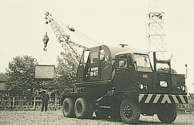 在履帶式起重機(jī)改進(jìn)為輪式起重機(jī)的過程中,神戶制鋼作為先驅(qū)者留名于世。1953年完成的日本國產(chǎn)第一號(hào)汽車起重機(jī)10KT(6T吊裝)、20KT(10T吊裝)交付給警察預(yù)備隊(duì)。