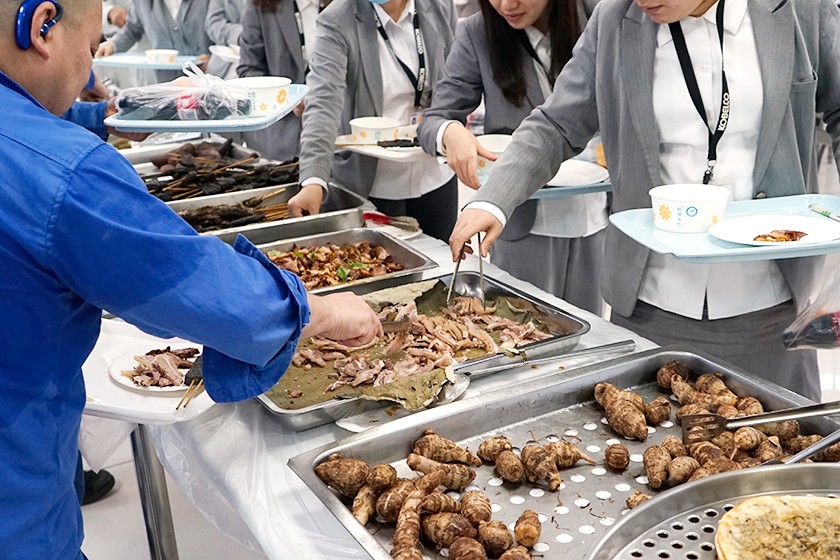 為弘揚江南傳統(tǒng)文化,豐富職工生活,11月16日,杭州神鋼在公司食堂特舉辦“神鋼 名羊天下“為主題的美食節(jié)活動。本次美食節(jié)活動以本地的特色品種湖羊為主打產(chǎn)品 :紅燒羊肉、白切羊肉、香辣羊蝎子、羊雜湯等,配以江南特色糕點:法根綠豆糕、法根雪餅、法根桃酥等四十余品種。美食當前,怎能錯過!開餐后,大家紛紛選取自己喜歡的食物,大快朵頤。公司全體員工及外協(xié)員工共980余人在歡聲笑語中,共享了本次美食盛宴。